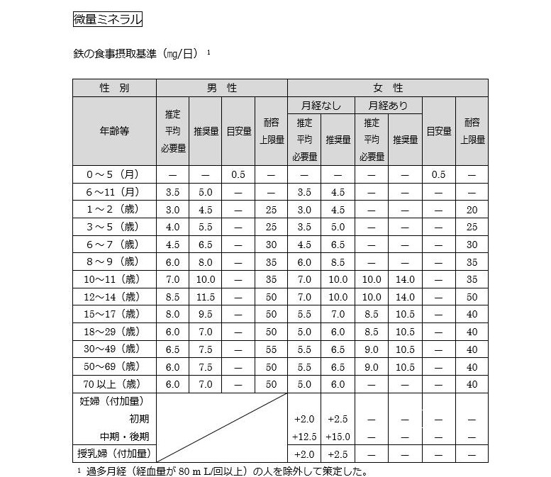 □ 鉄の食事摂取基準