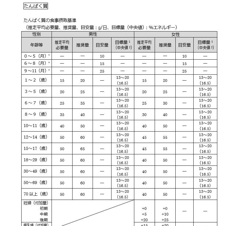 □ たんぱく質の食事摂取基準