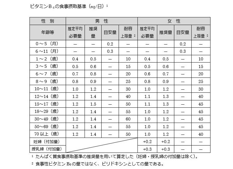 □ ビタミンB6の食事摂取基準