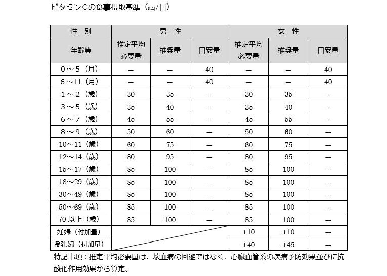 □ ビタミンCの食事摂取基準
